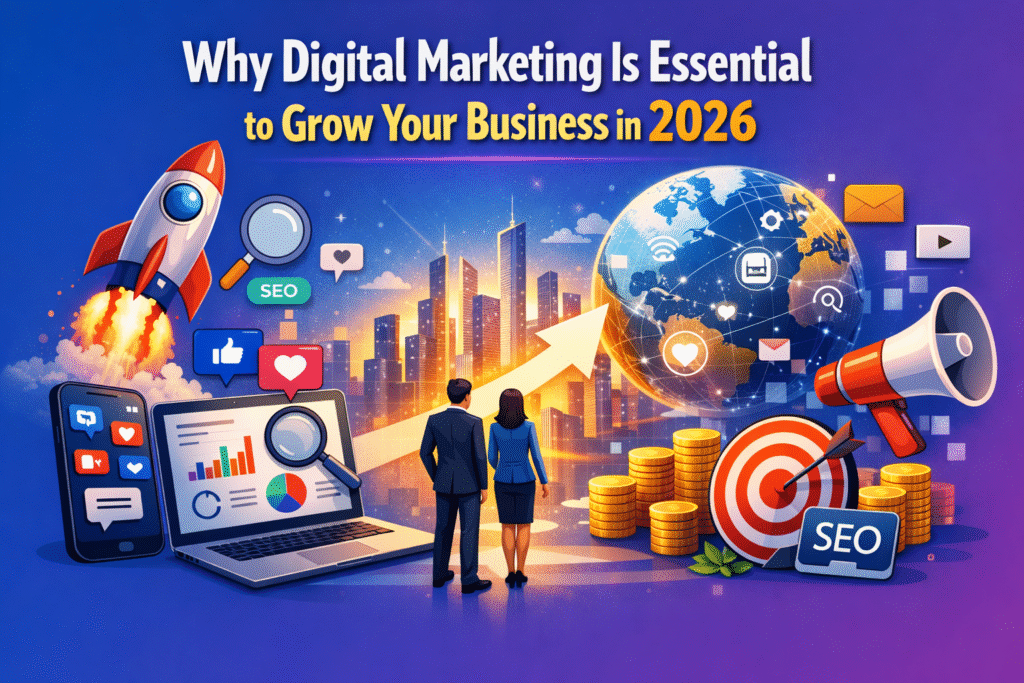 Why Digital Marketing Is Essential to Grow Your Business in 2026 Home Why Digital Marketing Is Essential to Grow Your Business in 2026 Why Digital Marketing Services Are Essential for Business Growth in 2026 In 2026, the business landscape is more digitally influenced than ever before. The way customers discover, interact with, and choose brands […]